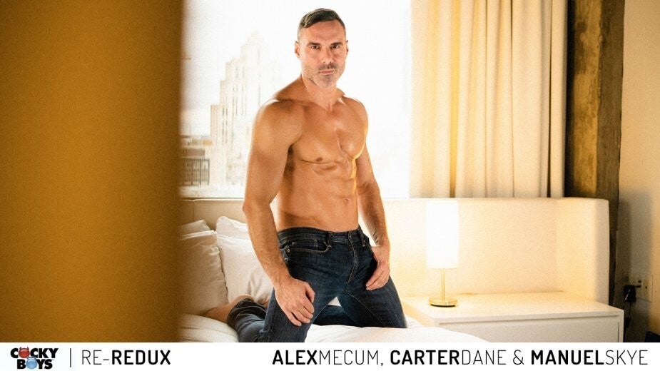 This is it! A wildly hot three-way with Carter Dane, Alex Mecum & Manuel Skye together for the first time in camera! It also features two milestones: Married couple Alex & Carter's first on-camera three-way AND Carter's first double-penetration in a scene!