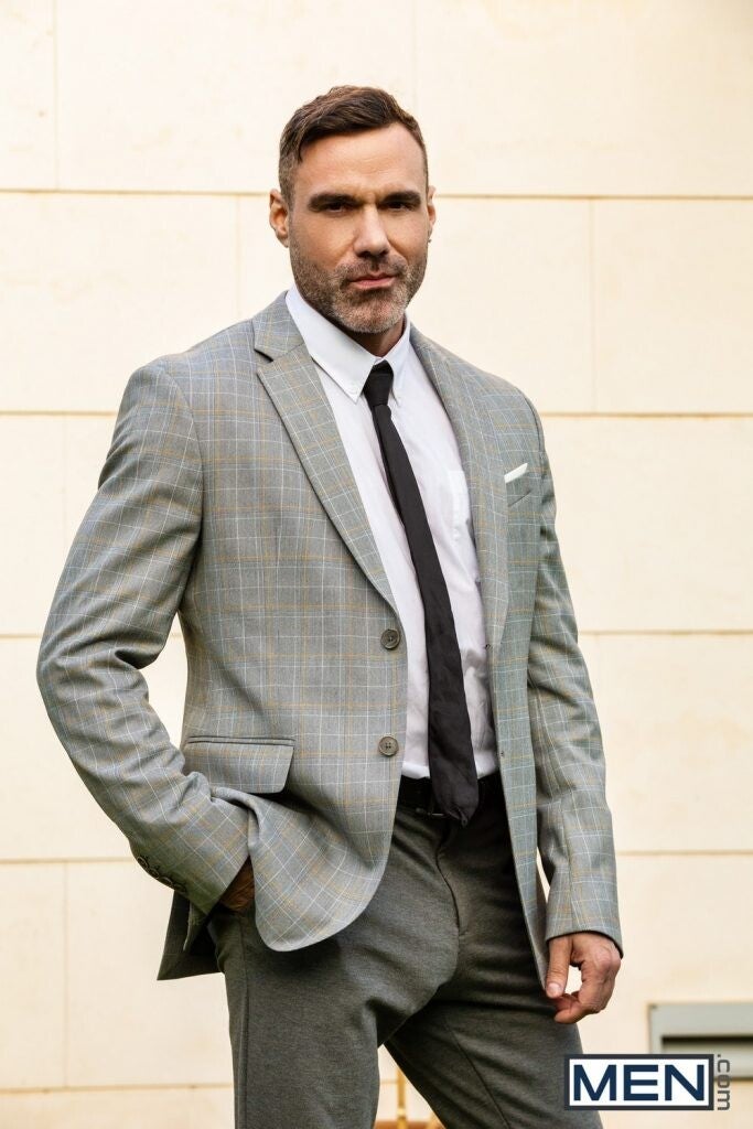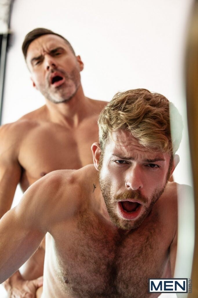 After catching his fiance in flagrante delicto, Abe (Gabriel Phoenix) hasn't stopped running, staying the night with men he finds on the dating app Grid. Unaware that Isaac (Leander) is using the app to try to track him down, Abe accepts a request from handsome businessman Edgar (Manuel Skye) to share his hotel room. No longer trying to be faithful, Abe kisses the sexy silver fox all over and sucks his cock, before being surprised by Edgar's request to sit on his face. Edgar fucks Abe's tight hole till he cums, then leaves his own hot load on Abe's hairy chest and abs. But when Isaac knocks on the door, Abe isn't ready to stop running.