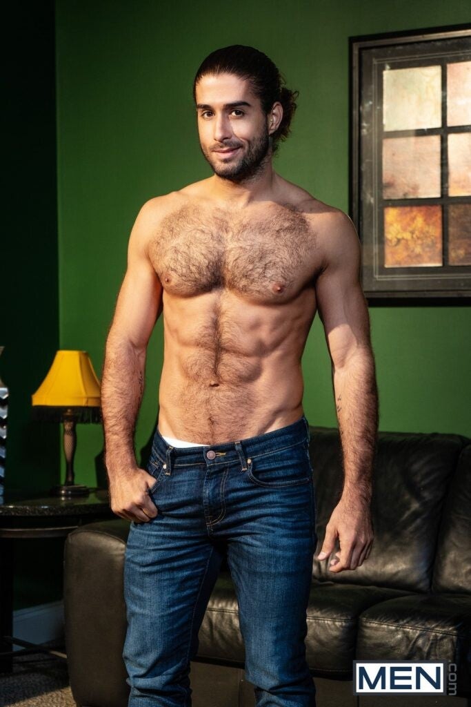 While running lines together in preparation for an upcoming audition, things get a little heated between actors Diego Sans and Xavier Cox. One thing led to another and dark-haired Diego’s pulling down his pants to reveal his big, uncut cock, and immediately, muscular Xavier is slobbering all over it. The two take turns blowing each other before Diego grabs Xavier’s perfectly round ass and buries his scruffy face deep into it. He then buries his huge cock into Xavier’s well-prepared hole and starts pounding away until he’s ready to bust and cums all over Xavier’s chest when who should walk in, the play director! It’s too bad he missed the hot show.