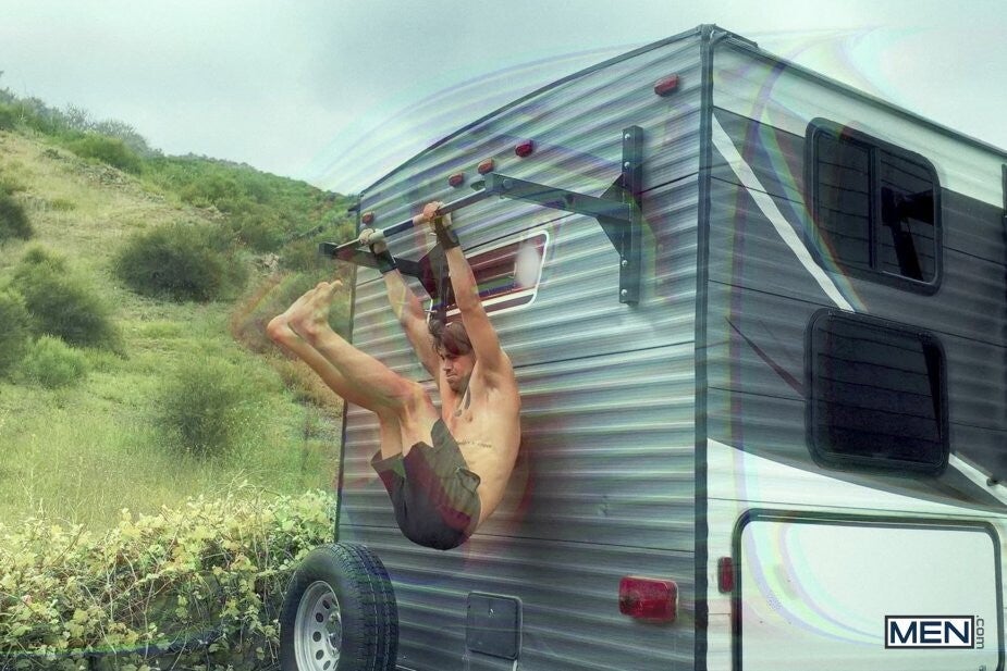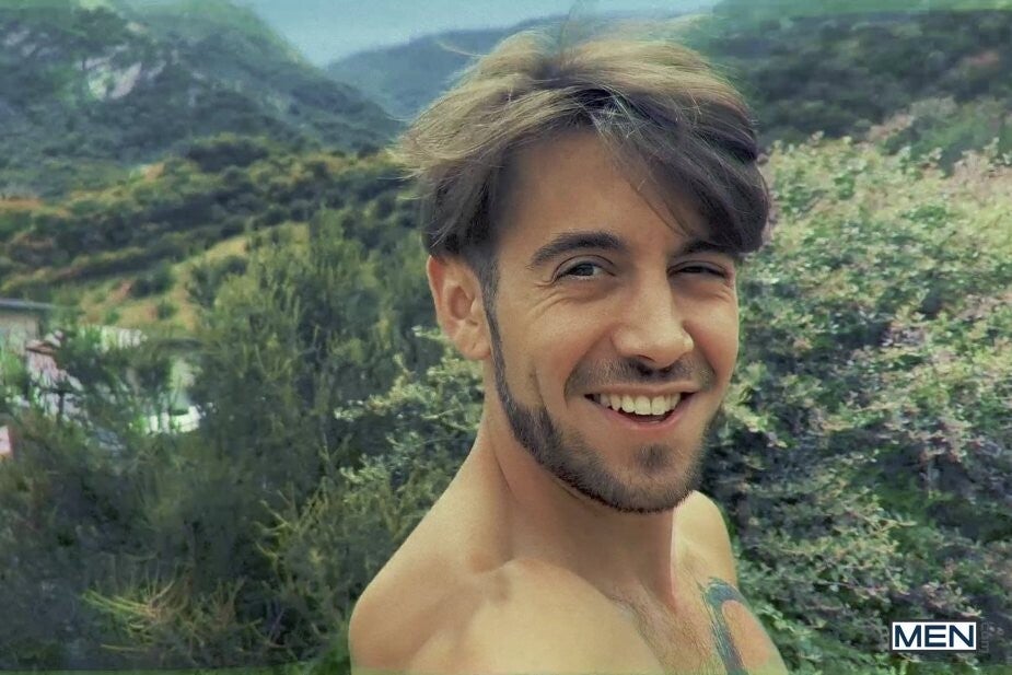 Since Dante Colle is all alone in his camper, he's been masturbating more than ever before. When cute Scottish twinks Callum and Cole invite him to join them for a steamy video call, he jumps at the chance. The guys chat a bit, then Dante gets things started as he takes off his shirt and invites the sexy Scots to do the same. Dante might be thousands of miles away, but he directs the action, showing Cole exactly how to suck Callum's cock and telling them just what he wants to see. The twinks 69 and Callum opens up Cole's hole with his fingers as Dante watches, stroking his cock and teasing his ass with a dildo. Callum instructs both Dante and Cole to ease just the head inside at the exact same time, Cole riding Callum and Dante fucking himself with the dildo! Dante strokes his huge cock as he watches Callum and Cole flip fuck. He blows a huge load on his laptop screen as the twinks kneel in front of their webcam for a virtual facial, then Callum cums in Cole's mouth before enjoying Cole's jizz.