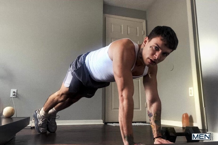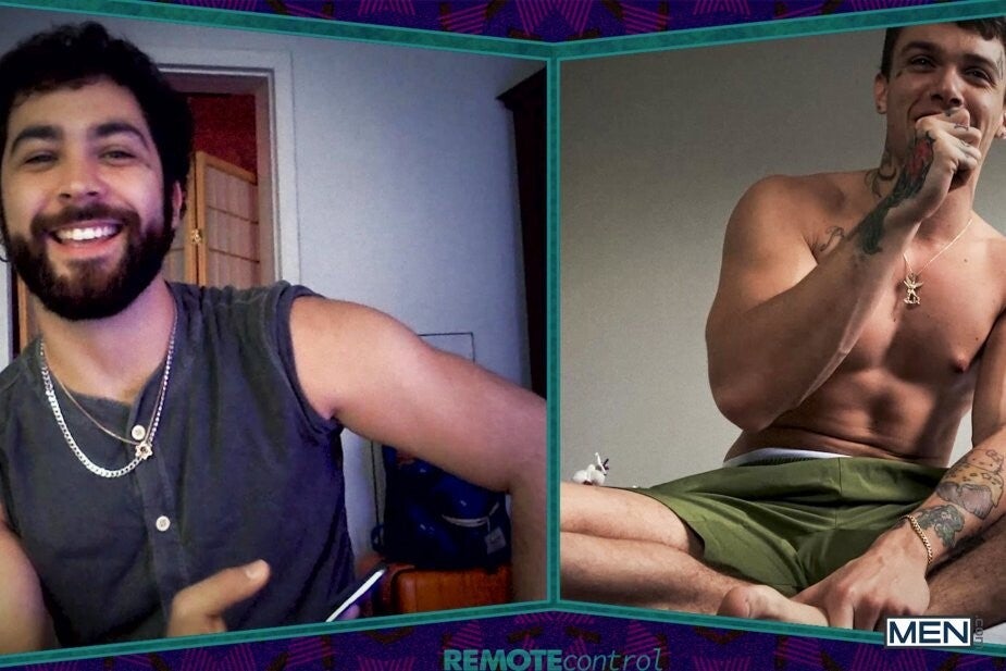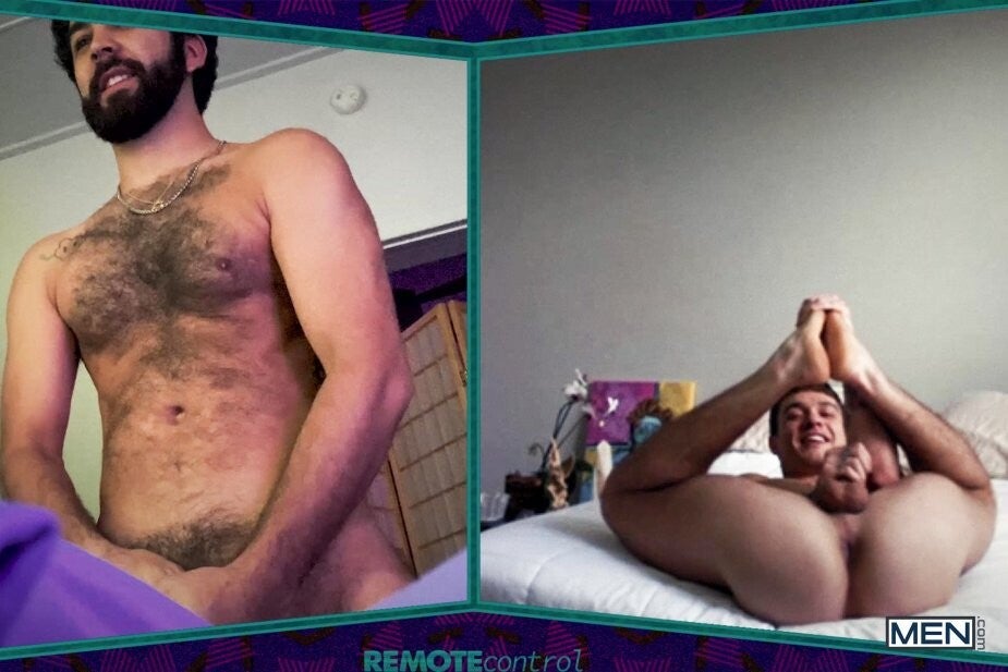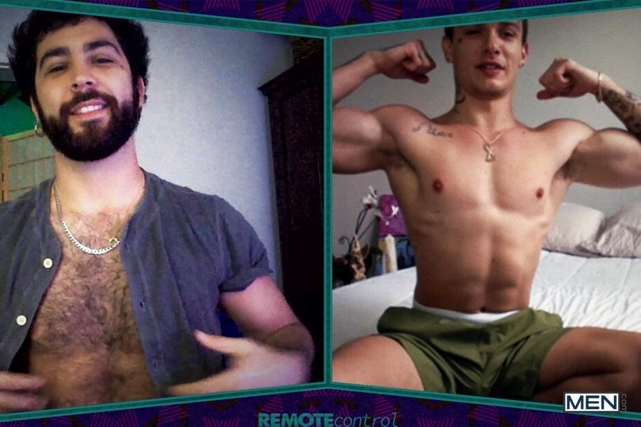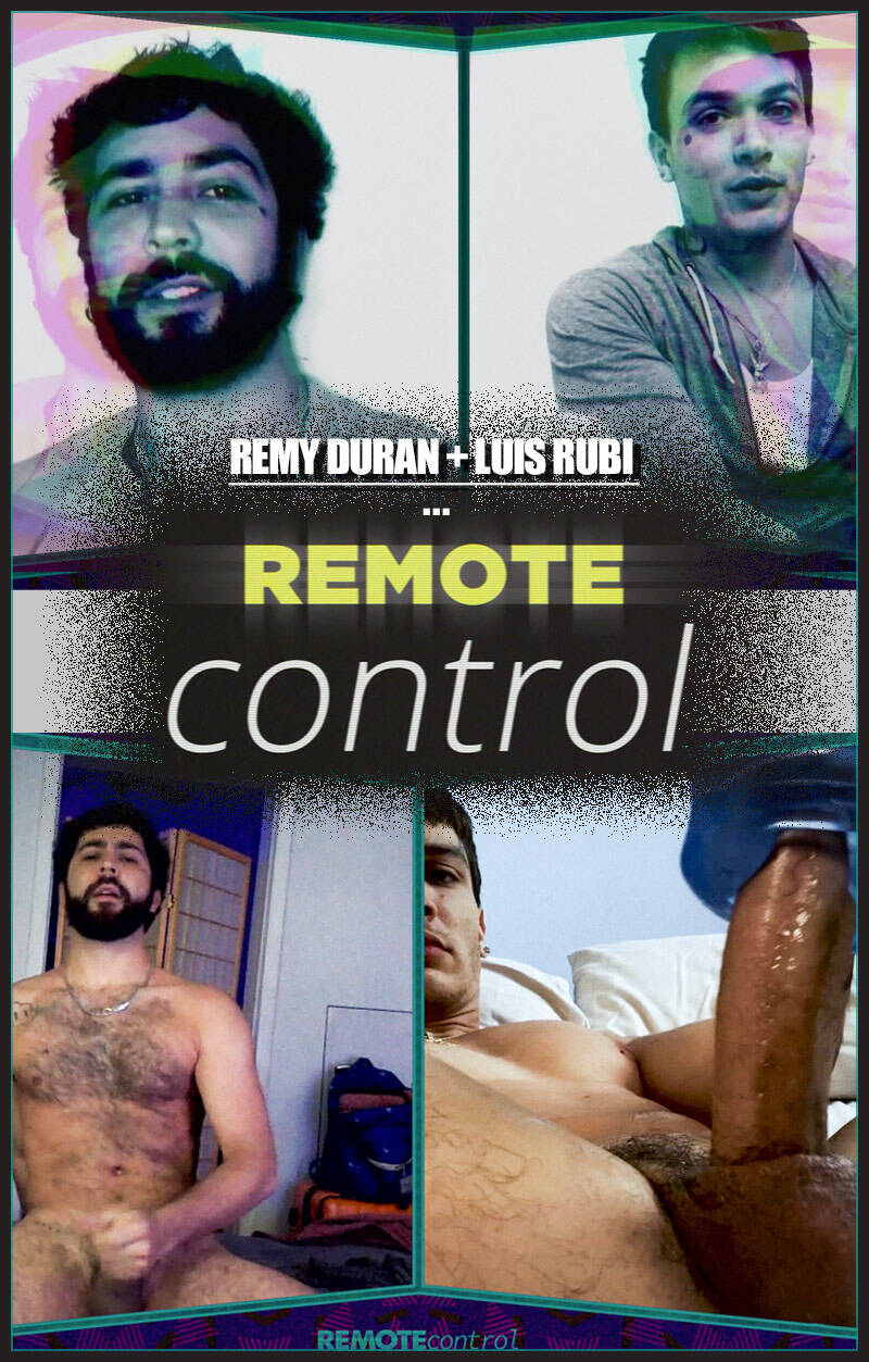 Luis Rubi is spending his time in lockdown pretty much the same way he usually spends his days: pumping up his muscular bod, jacking off, hopping in the shower, rinse and repeat! Remy Duran is having a bit more trouble adjusting to his alone time; this promiscuous top misses going out and having sex with strangers, but he's done his best to turn his living room into a nightclub. Together, the guys rediscover the old days of sexy video chatting as Luis shows Remy his athletic form, making the hairy top's mouth water. Remy loves how Luis looks in his white briefs, but he looks better naked, so he quickly strips and jacks his cock as he enjoys the show. Luis lies back with his legs up so Remi can see his hole as he pumps his cock with a stroker, and soon both guys are blowing their loads.