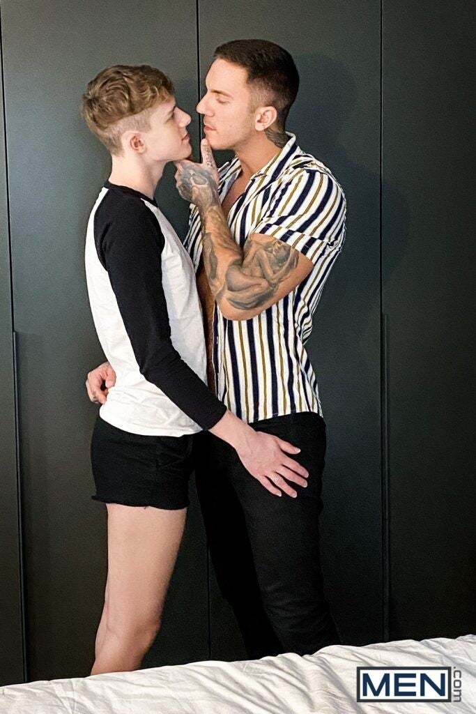 Dominant top Zilv is poised to set a record in the shampoo bottle challenge when playful twink Rourke runs up behind him and yanks down his boxer-briefs, sending the bottle delicately balanced on his huge bulge crashing to the floor. Zilv puts the cute brat up against the wall, vowing to teach him a lesson! That's just what Rourke wanted, because he hungrily swallows Zilv's hard cock, then bends over the sink and pushes his ass out, teasing the dom with the sight as Zilv fingers his hole before fucking him doggystyle. In the bedroom, Zilv eats the bottom's ass and pounds him on the bed, then Rourke worships the top's cock, balls, and asshole before the horny pair cums together.