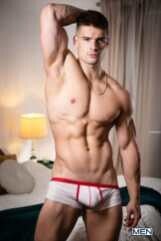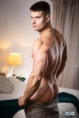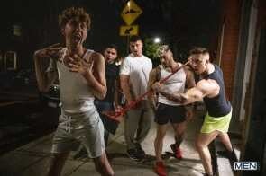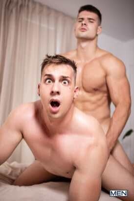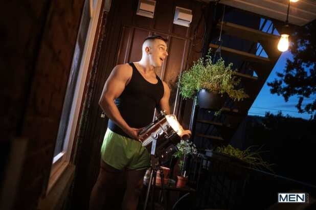 Ace Quinn's favorite toy just isn't getting the job done, but he has a bright idea! He straps the dildo to a spotlight and hauls it outside to send up the dick signal, and not one but three tops show up to help this guy in need. Ace invites the men inside to see who measures up to his needs, and chooses hung stud Malik Delgaty. Although Ace tells the other two guys they can head out, they secretly stay to watch as Ace starts blowing Malik, deepthroating his thick cock as the top spanks his ass. As Malik penetrates the bottom doggystyle, he notices the watchers, smiling and winking as they stroke their dicks and enjoy his performance! He pounds Ace in missionary and breeds his hole with a creampie. Ace is glad the other two haven't left yet, because he needs more dick!