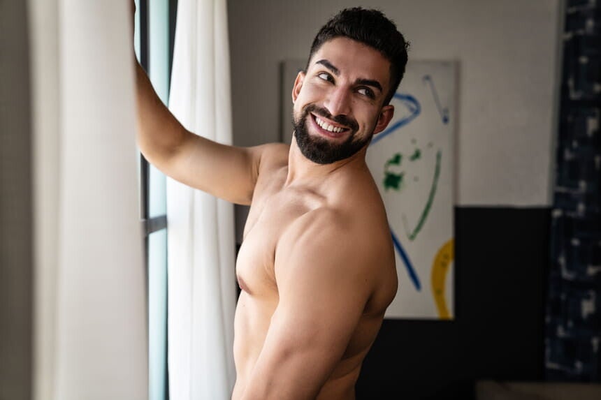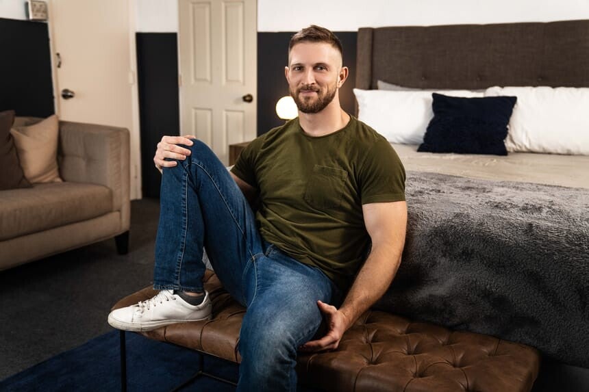 When Nick LA gets back from a disappointing date to find that his roommate, Luke, has invited over a sexy top from a hookup app, he decides to swoop in and steal that cock! He locks his buddy in the bathroom and lets Paul Wagner in, flirting with him hardcore and taking him to the bedroom. He kisses the top and gets him undressed, licking his balls and sucking his cock before getting on top for a ride. Paul hears Luke pounding on the bathroom door, but Nick assures him it's just the wind as he bends over to take a deep pounding from Paul. In the bathroom, the horny prisoner takes off the doorknob in time to see Nick getting rawed doggystyle on the couch! He can only watch as Paul sucks the bottom's cock and fucks him missionary till Nick cums. Paul pulls out for a facial, and shoots so far, some of it hits Luke in the face too!