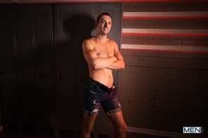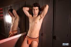If you've always wanted some quality time with your favorite Men.com hotties, today's your chance to get up close and personal with Johnny B. Johnny caresses his lean body in the locker room, slipping out of his cut-offs and rubbing his cock through his black lace thong, then stroking it sensually till he cums. He's joined by Michael Del Ray, and the guys suck each other before Michael fucks Johnny missionary on the bench. Johnny bends over to take Michael's dick nice and deep in doggystyle, then rides the top. Johnny orgasms again and Michael blows a hot load on his hole!