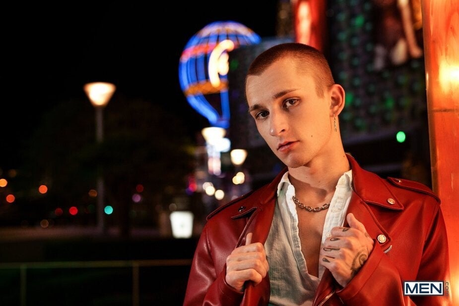 Have you been waiting for your chance to hook up with hot Men.com twink Theo Brady? Get the next best thing as you follow Theo through his favorite haunts as he poses under the bright neon lights of the city, then leads you to a luxurious bathroom where he strips down and caresses his cock in the bath. Reese Rideout is waiting just outside the door for him, and the pair make intense eye contact before he kisses Theo's abs and sucks his dick. Theo lowers himself onto Reese's hard cock, riding him on the bench before the top puts him up against the wall and fucks him doggystyle. In the bedroom, Theo blows Reese, then takes him deep in missionary. Reese pounds the bottom's ass in spoon until Theo moans with his orgasm, then Reese pulls out and cums.
