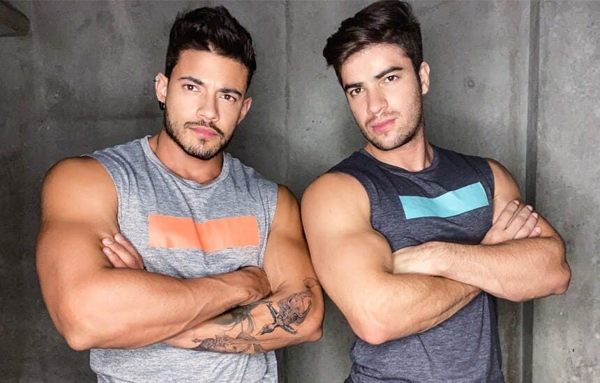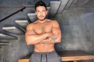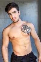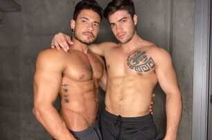 Both dark-haired, both tattooed, and both muscular hunks, Alejo Ospina and Daniel Montoya are a perfectly matched pair in their workout gear. They get straight to kissing passionately as Alejo takes off both their shirts to let them press their sexy chests together.