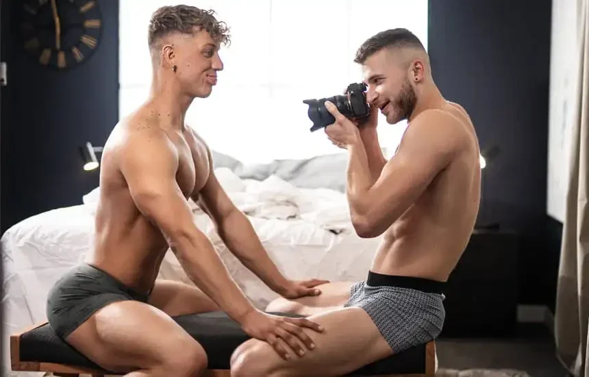 Felix Fox and Devy start their day snuggling in bed together, and Devy thinks his blond boyfriend looks so good, he just has to get him on camera! Felix is bashful at first, then takes his turn filming Devy between the sheets before he sucks his man's cock. Felix fucks Devy's throat before climbing up to ride the top's cock, and Devy makes Felix cum as he spoons him, penetrating him from behind. Felix eagerly waits, his mouth open, as the top licks up his jizz and spits it into his mouth, then Devy fucks him missionary before covering him with another hot load.