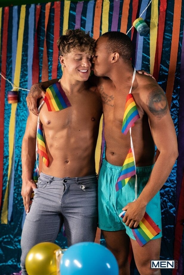 As they dance atop the pride parade float, Trent King and Felix Fox hit it off, taking off their shirts and kissing before even learning each other's names. Felix sneakily sucks Trent's cock, then they hop off the float to find somewhere a little more private... but not before inspiring some more pride in the crowd! Safely behind closed doors, Trent rims Felix and spanks his muscle ass, then fucks him from behind. Felix rides that big dick and busts as the top fucks him in spoon, then Trent pulls out and cums.