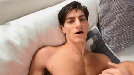 Aiden Ward knows that watching him play with his cock is turning Paul Wagner on, and he enjoys teasing the top by stroking his cock till Paul has to help out, jacking his dick, rubbing his balls, and teasing his hole with his fingers. Aiden pulls out Paul's cock and sucks it, getting on top as he swallows every inch before lowering his ass onto it! Paul turns him on his back to pound his ass, and Aiden urges the top to cum inside him, then jacks off his rock-hard cock till he orgasms.