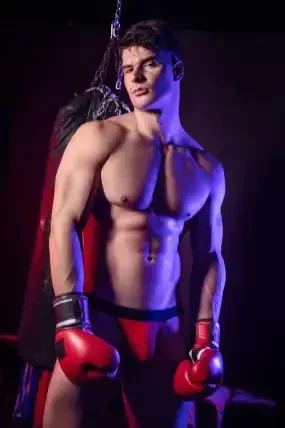 You've watched all his scenes, you've fantasized about him, but you want to know: what's it really like to hook up with French Canadian muscle top Malik Delgaty? Now's your chance to find out. Watch Malik strap on his boxing gloves and work up a sweat on the heavy bag, stripping out of his white t-shirt to show off his cut pecs and abs glistening with water. Johnny Donovan admires Malik so much as the top does a handstand, he just has to go rub his face against Malik's bulge! Johnny sucks Malik's big cock upside-down and right side-up, then Malik pounds him doggystyle as Johnny hangs on to the heavy bag. Johnny rides that dick, then moans as Malik gives him a deep drilling in piledriver. Johnny cums as he gets penetrated in missionary, then takes a hot facial.