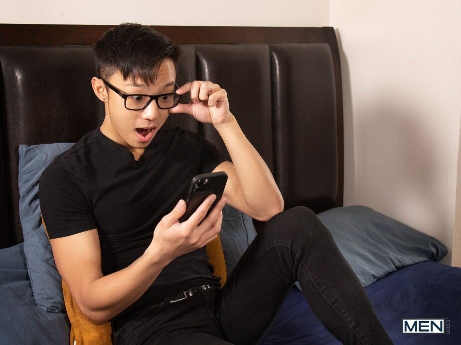 Bespectacled 100% sub Dane Jaxson receives a message from a muscle top looking for a hookup, and he's DTF! He strips down to his jock strap and eagerly awaits him. When Phillipe Massa arrives, he immediately pushes the bottom against the wall, spits in his mouth, then feeds him his thick dick. The muscular top strips, then picks Dane up for a stand and carry against the headboard before drilling his eager hole in doggystyle. The bottom cums as Phillipe rails him in missionary, then takes a facial all over his glasses.