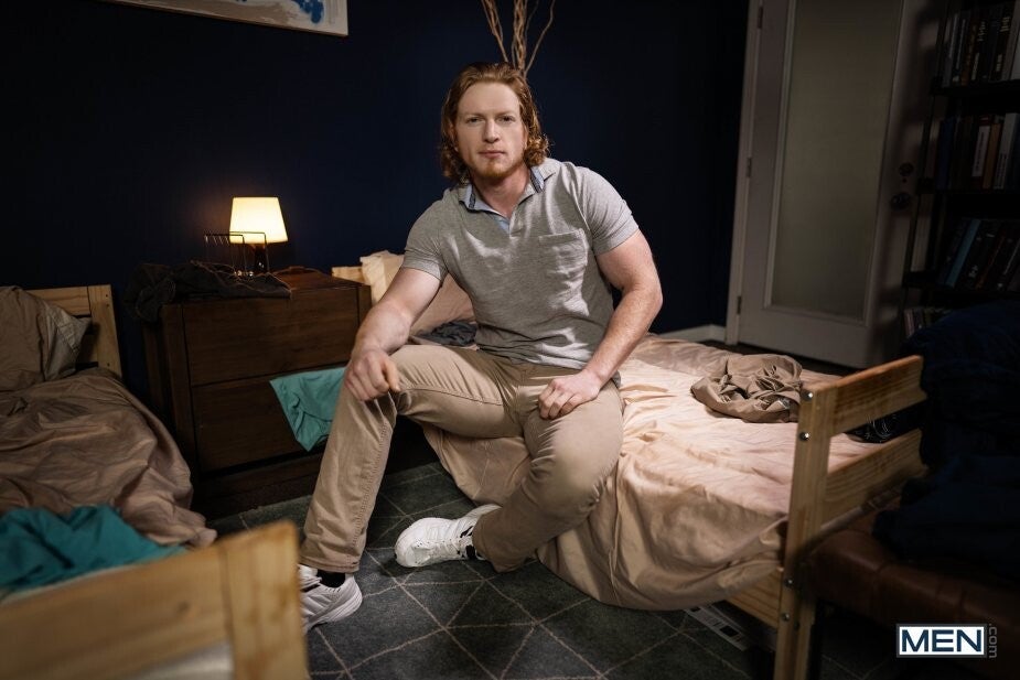 Finn Harding's college tour starts with a bang when he finds his roomie for the weekend, Felix Fox, riding a dick! Finn teaches blond Felix and red-haired Kyle Connors about the sock code, then gets schooled as Felix squirts out a big creampie on Finn's head. Felix says that fair's fair, and Finn can squirt on him too. Kyle and Felix kiss around Finn's cock, and Finn fucks Felix doggystyle before Kyle rides him and Felix rides Kyle! The redhead rims the bottom as Felix blows Finn, then Finn gives both the college guys their turn getting pounded in missionary till they orgasm. As promised, Felix and Kyle share Finn's cum load!