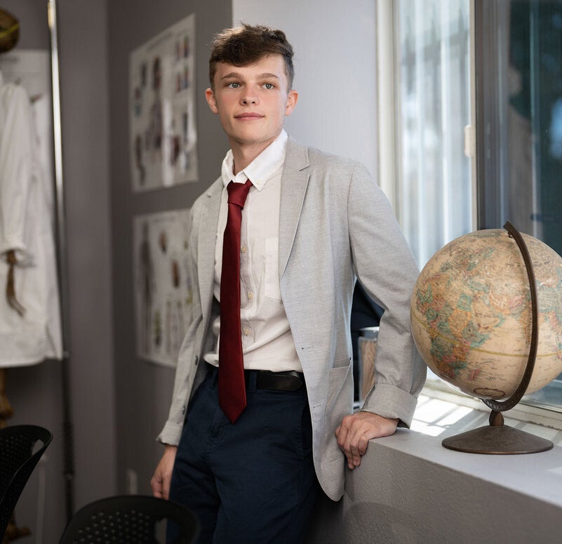 Joey sucks the top, then rides him on the professor’s desk till he orgasms before getting on his knees to take Jake’s load in his mouth.