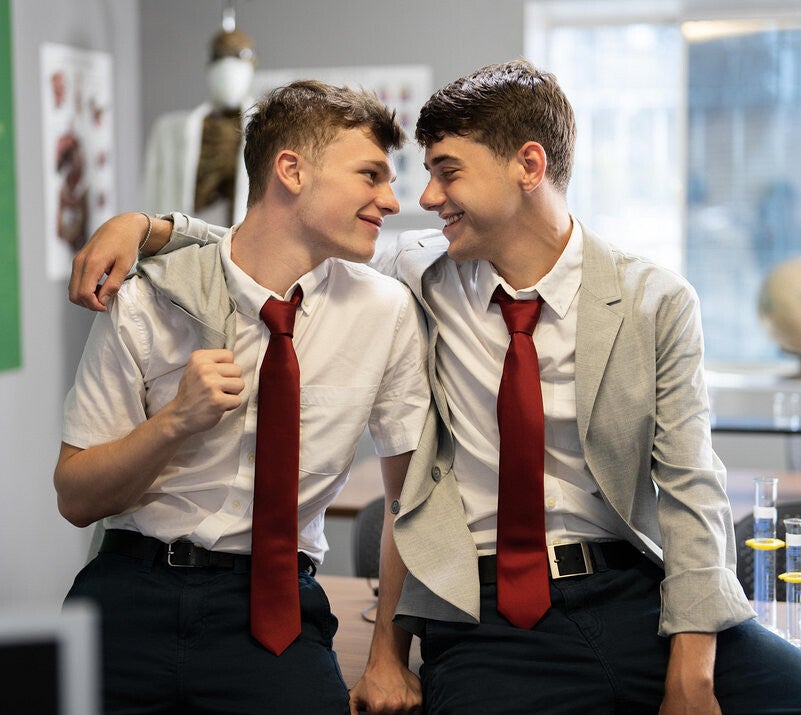 hen their jock classmate Clark Reid keeps tossing stuff at them, twinks Jake Preston and Joey Mills hatch a plan. As the professor makes Clark write on the board, Joey jerks Jake off in an Erlenmeyer flask, then leaves it on Clark’s desk and lets the jock take the blame for cumming in class.