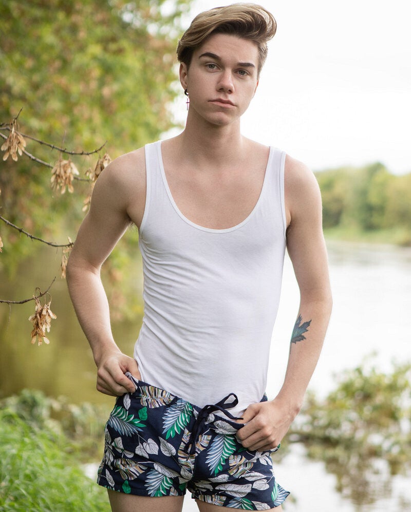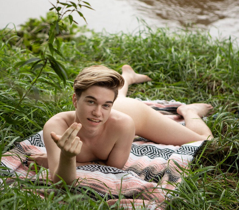 Jake Preston’s road trip may be turning out to be a bust, but he still wants to bust a nut. He strolls down to the river, where he spies hot twink Jordan Lake lying naked on a blanket and can’t help touching himself.