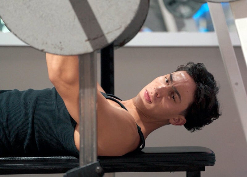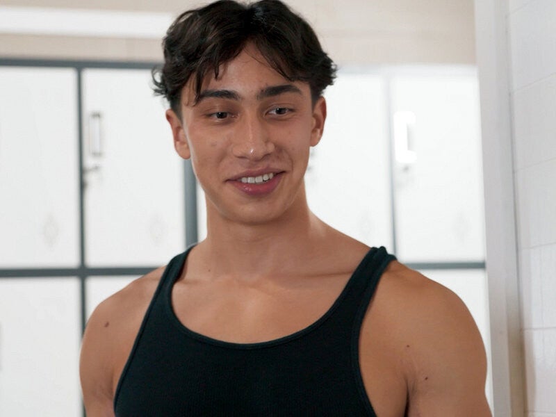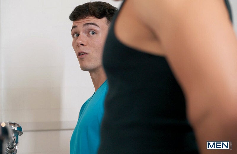 Fratboy Cameron Neuton hangs back to get a better look at that ass when Clark Reid bends over in the locker room, and later Clark checks out his cock at the urinal. When Cam is struggling with a weight bar, Clark comes to his rescue and ends up sitting on his face! Cameron eagerly motorboats that ass, then eats it before pushing the muscular bottom's thong to the side and fucking him. Clark rides the top on a bench and sucks him, then Cameron bends the bottom over to drill his hole. The fratboys fuck in missionary till they both cum!