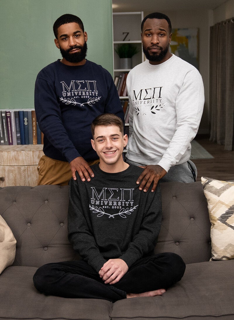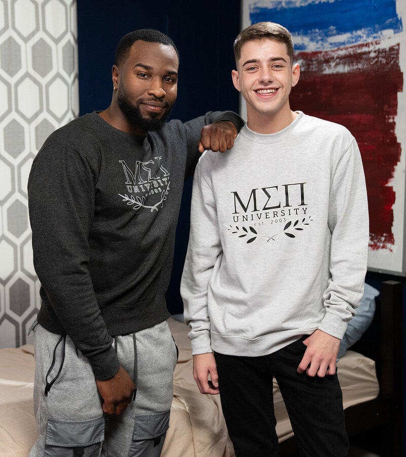 Joey Mills finally arrives at his new dorm room and gets a warm welcome from roommates Shadow and Denzel! Joey checks out his new room and decides to christen the bed, but after stripping down and starting to stroke off, Shadow comes in to vacuum! He gets flustered when he sucks the blanket off and sees the twink naked, rushing out, and horny Joey decides to stick his dick in the vacuum hose. Denzel catches him and gives Joey a much better option, sucking his cock, then tonguing his hole before he fucks him doggystyle. Joey rides the top, then gets drilled in piledriver before he cums as his roommate pounds him on the bed, and Denzel pulls out to shoot on the bottom's hole.