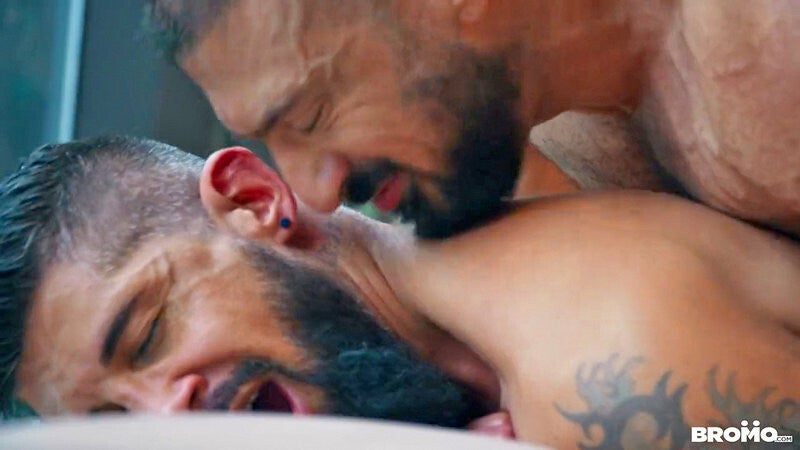 As bearded hunks Marco Napoli and Justin Jett size each other up, Marco grabs Justin by the shirt and pulls him close, staking his claim before reaching into Justin's gray sweats to feel his ass. Dominant Marco takes what he wants, drilling Justin's throat as well as his hole, but he also makes sure the bottom is fully satisfied, fucking a load out of him before cumming on his face.