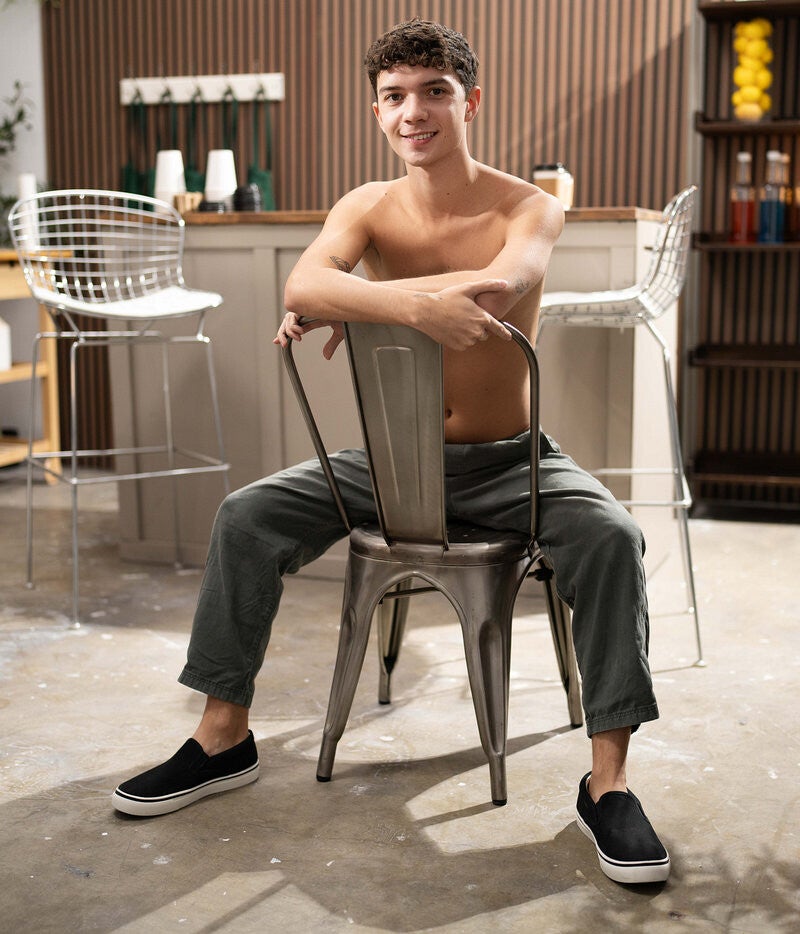Barista Joey Mills takes care of all the hot twinks, so when Sam Ledger comes into the cafe he sends his coworker to the back. Sam wants something hot and creamy, and Joey shoots his shot, writing "suck me" on the cup and giving Sam a look at his bulge! Sam ducks behind the counter to get a taste of Joey's big dick, and the top adds some whip for Sam to lick off. Joey sends his coworker home so he can fuck Sam bent over the counter, then on a chair. Joey rims the bottom, and Sam cums as he rides the hot barista before Joey pulls out and shoots some more cream.